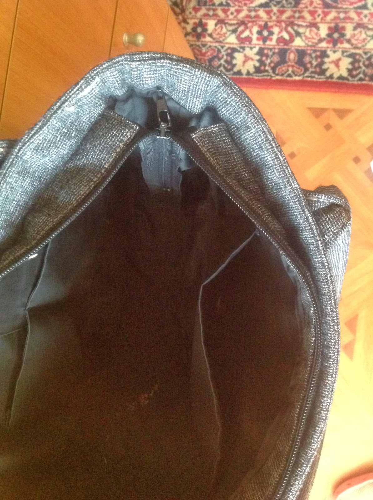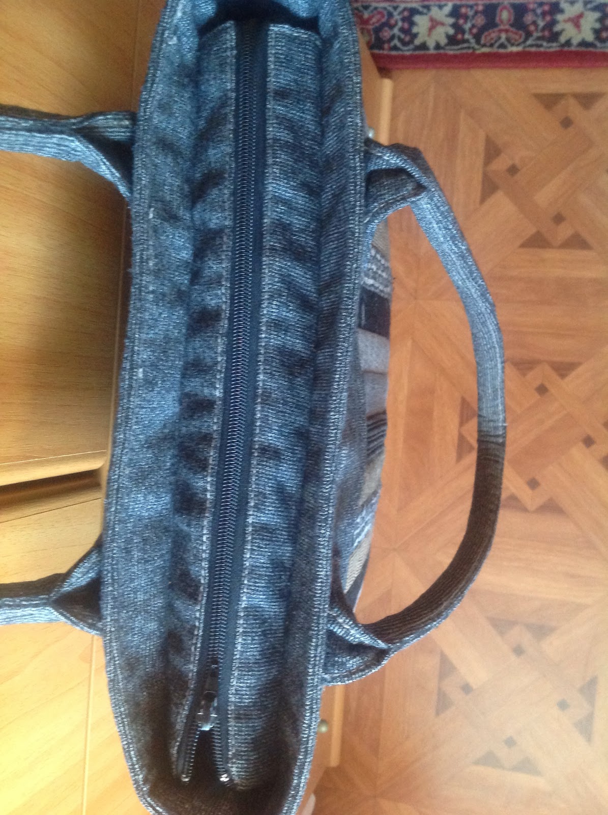 Моя вторая рукодельная сумка. С внутренностями все в порядке- два кармана напротив друг друга. Застегивается на молнию.