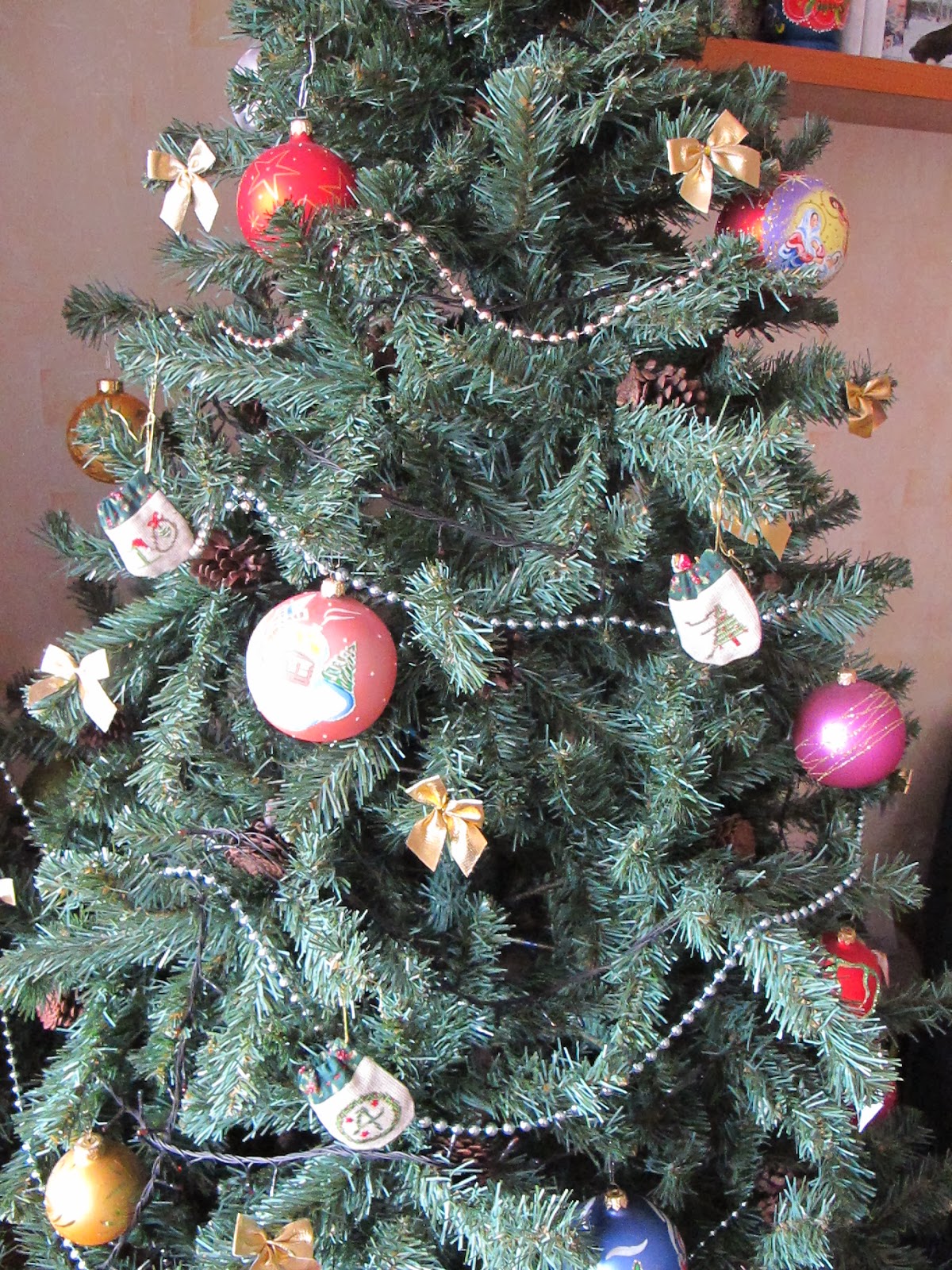 Как обещала - показываю свои мешочки с конфетками. Результат есть. Каждый день после завтрака младшенький около елки в поисках очередного мешочка. Как много волшебства таит в себе этот праздник в 6 лет! И какое наслаждение наблюдать за этим!